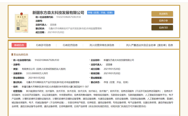 东方森太科技发展有限公司一直以来聚焦客户信息化整体解决方案需求,能为医疗、电信、制造、能源、金融、教育等多个领域和行业提供ICT解决方案。自2006年成立至今15年以来先后在北京、天津、合肥、西安、深圳、河北、香港等多个城市设立了分公司和办事处。本次新成立的新疆东方森太科技发展有限公司主做政府、金融、石油 行业的系统集成项目和MA维保服务,将有力推动该地区业务发展。
